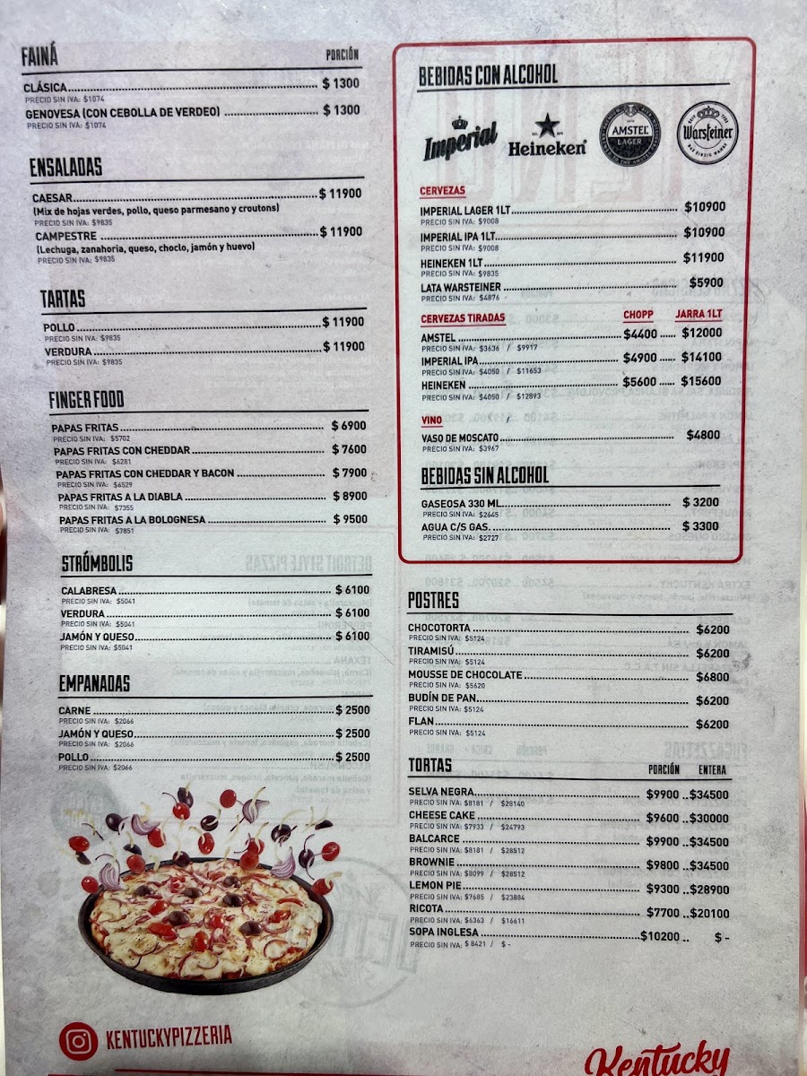 Welcome to Kentucky, a vibrant pizza haven nestled in the heart of Avenida Corrientes, Buenos Aires. Drawing you in from the bustling street, this restaurant invites you to experience Argentine pizza like never before. With an ambiance reminiscent of an American diner, Kentucky merges comfort with innovative flavors. Reviewers rave about standout dishes such as the ham and bell pepper pizza, hailed as a heavenly delight. Each bite is an indulgence, full of melting cheese and perfectly balanced toppings. The Napolitina and Fugazella are also fan favorites, showcasing the creativity and quality that defines their menu. And let’s not forget the extraordinary tiramisu — a dessert that captivates your senses and doesn’t last long on the table. The attentive service enhances the experience, as staff members like Julieta and Alvaro ensure you feel at home. Kentucky is more than just a meal; it's a culinary escape that serves up joy, one slice at a time.